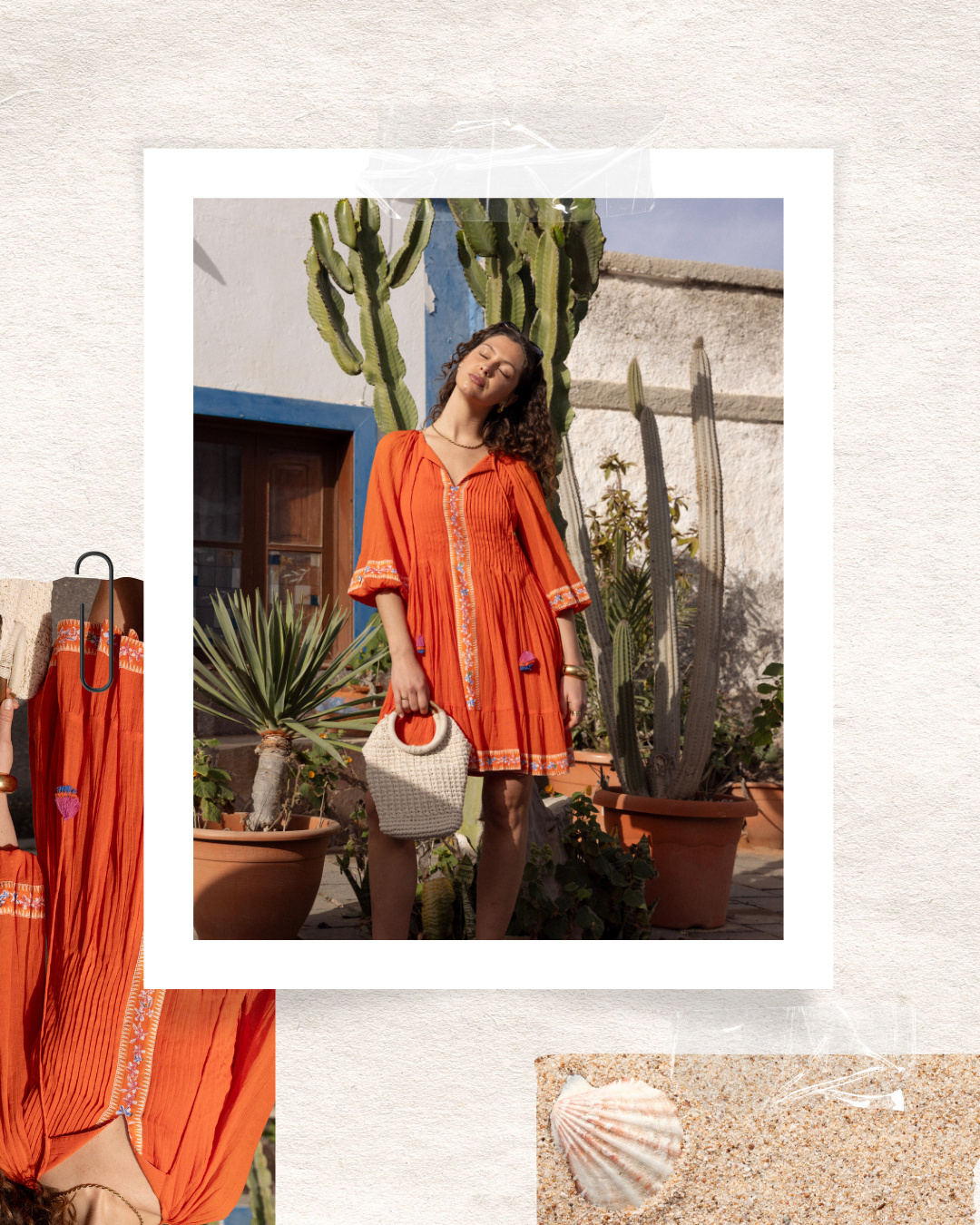 Shop Robe mi-longue brodée manches longues VEDA Robes Longues